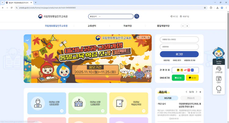 통일부 국립통일교육원 홈페이지의 핵심 서비스 3가지